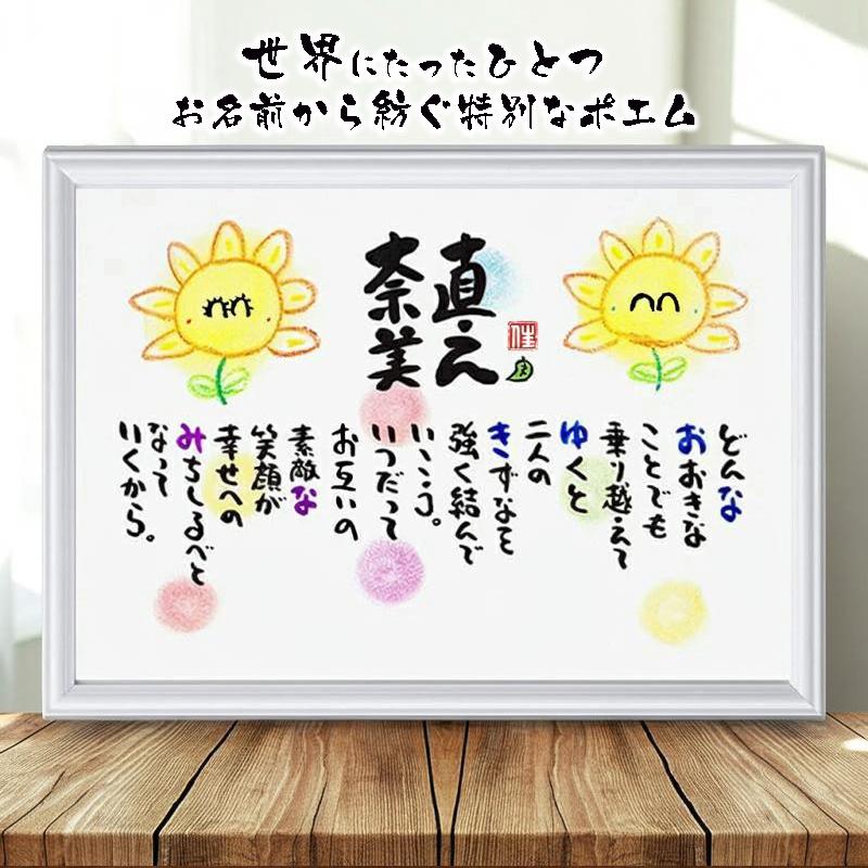 結婚祝い 紙婚式 名前ギフト詩 お名前ポエム サイズ 手書きひまわりのイラスト入り お二人用 名前ギフト詩 フデモジスタイル 通販 Yahoo ショッピング